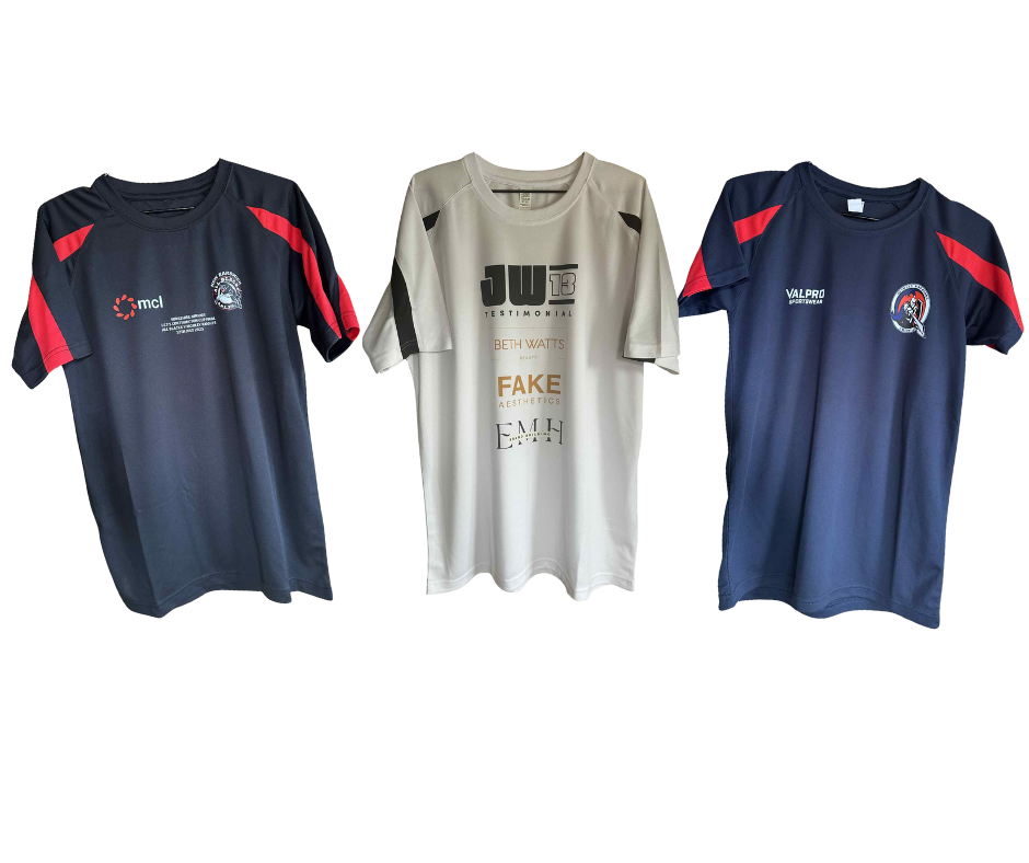 Unlimited design options and a choice of fabrics. This is one of our most popular items, worn as warm up tops, gym t shirts or even after match.